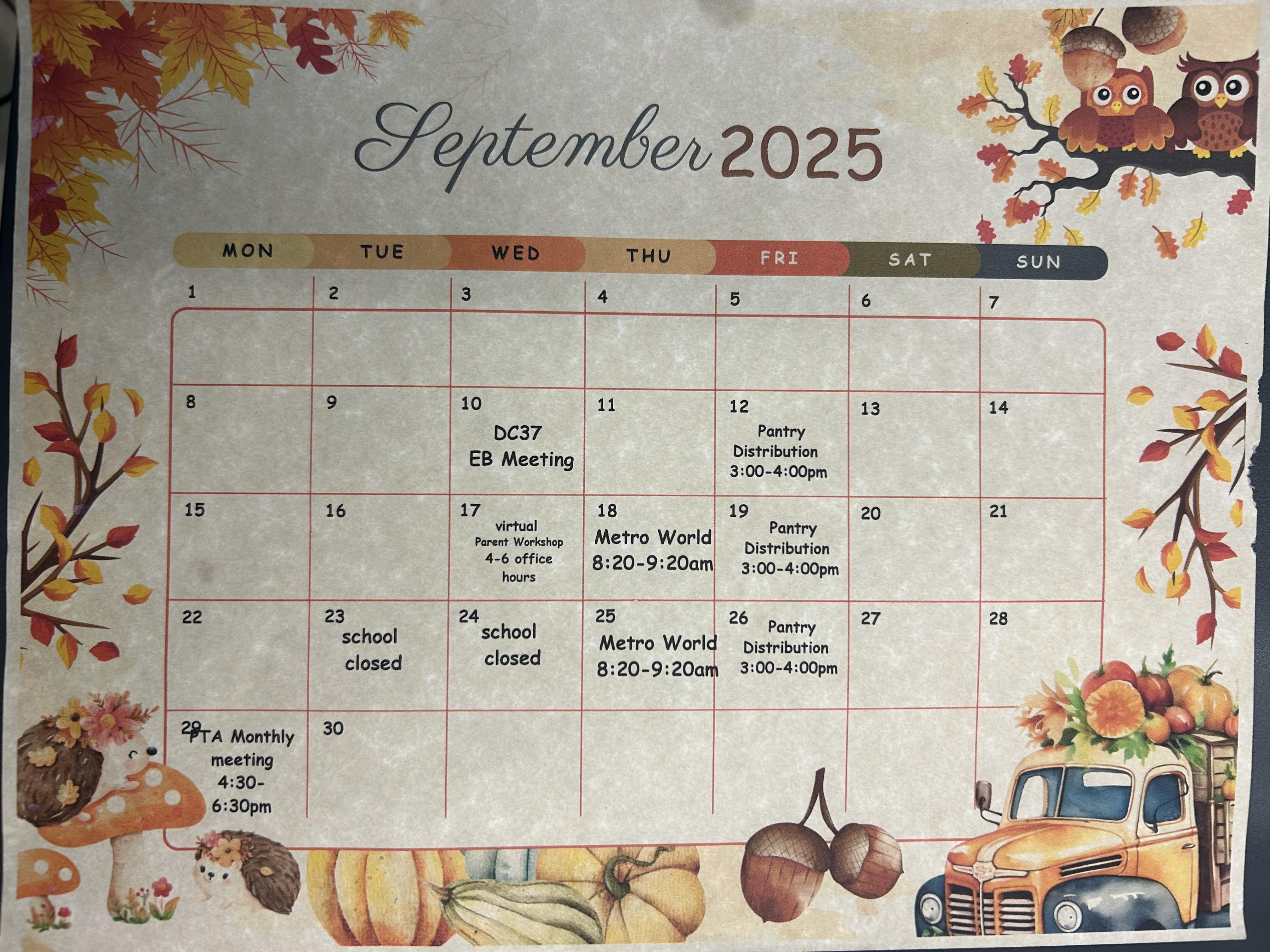 Fall School Calendar Dates